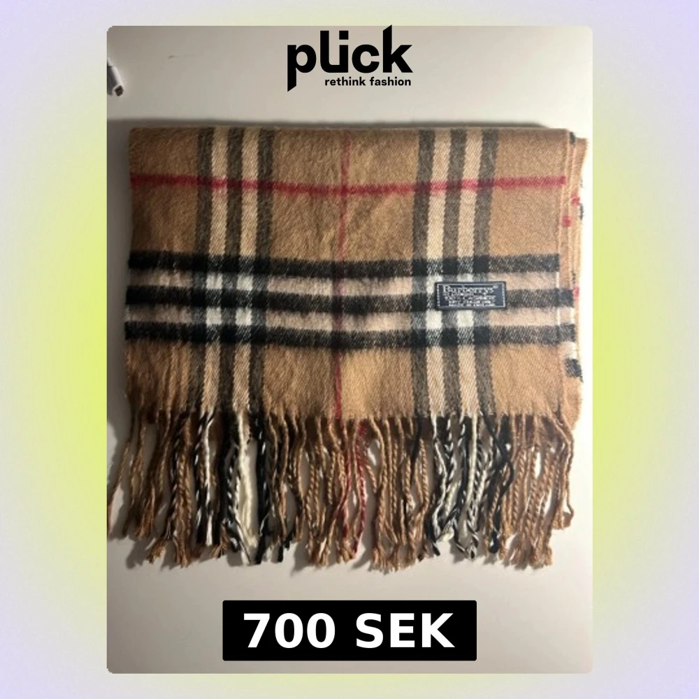 Säljer en klassisk rutig väst från Burberrys i 100% kashmir. Västen har beige bas med svarta, vita och röda rutor, samt fransar längs nederkanten. Perfekt för dig som gillar tidlös design och mjuka material.