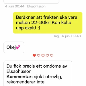 Hej, vill bara visa orsaken till mitt 1/5 omdöme. En tjej som tydligt bara vill förstöra för folk. Ha en fin dag! 💓