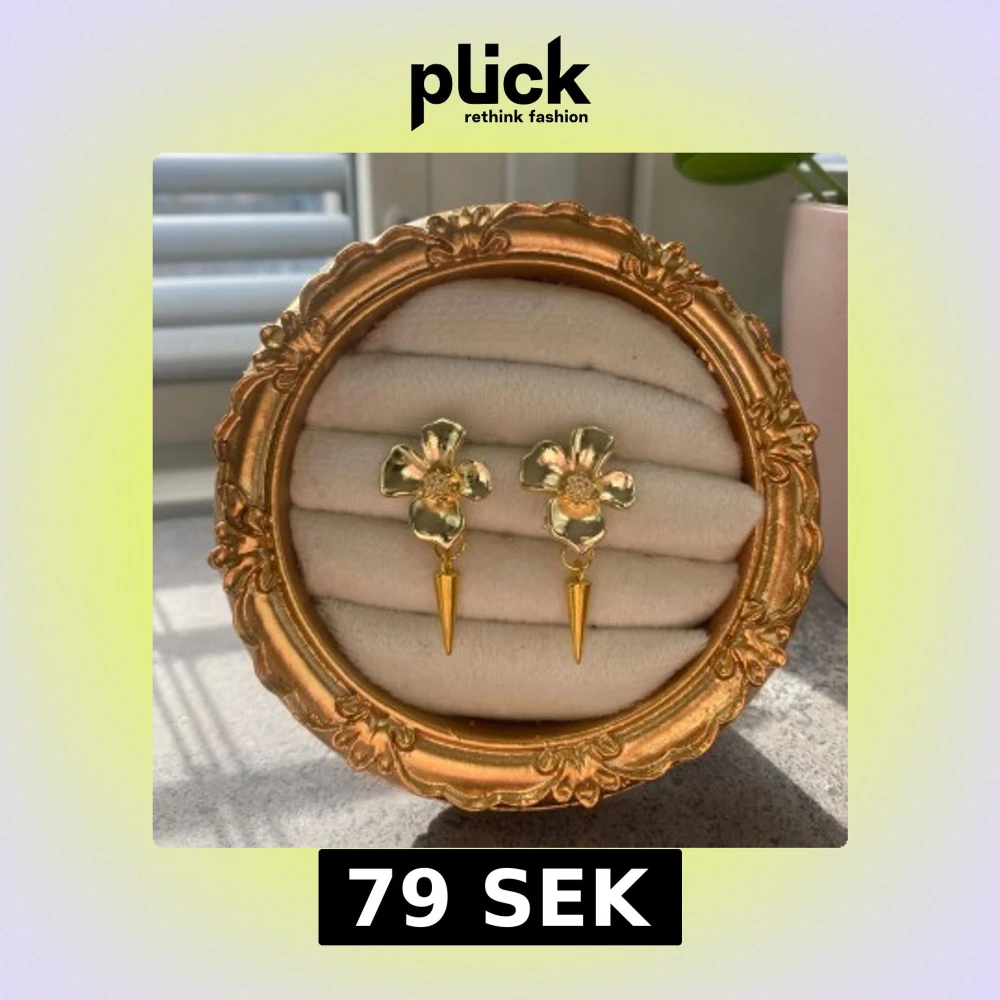 Handgjorda eleganta örhängen i guld med blomformad design och spetsiga hängen