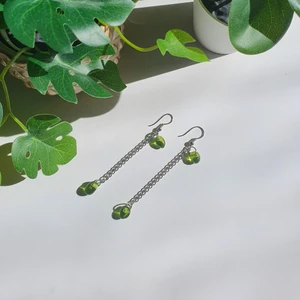 Hemmagjorda örhängen av kedjor och glaspärlor💚 köparen står för frakten och skriv om ni har några frågor😊