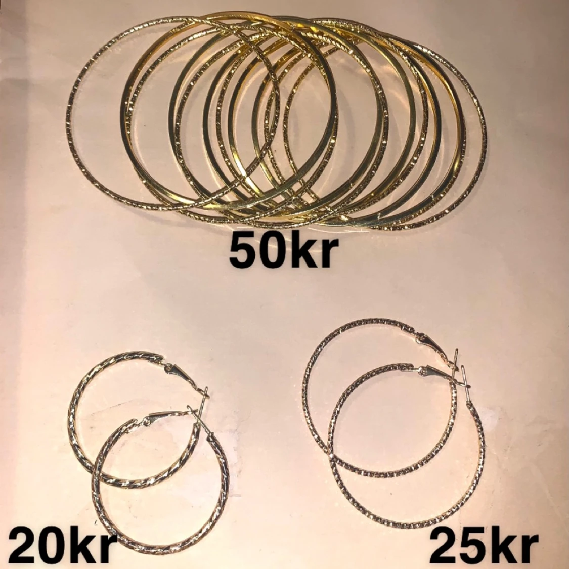 Två par guld örhängen ( ej äkta guld ) och armband i flera lager ( ej äkta guld ). Allt är köpt på H&M och aldrig blivit använt. Frakt ingår med 29kr