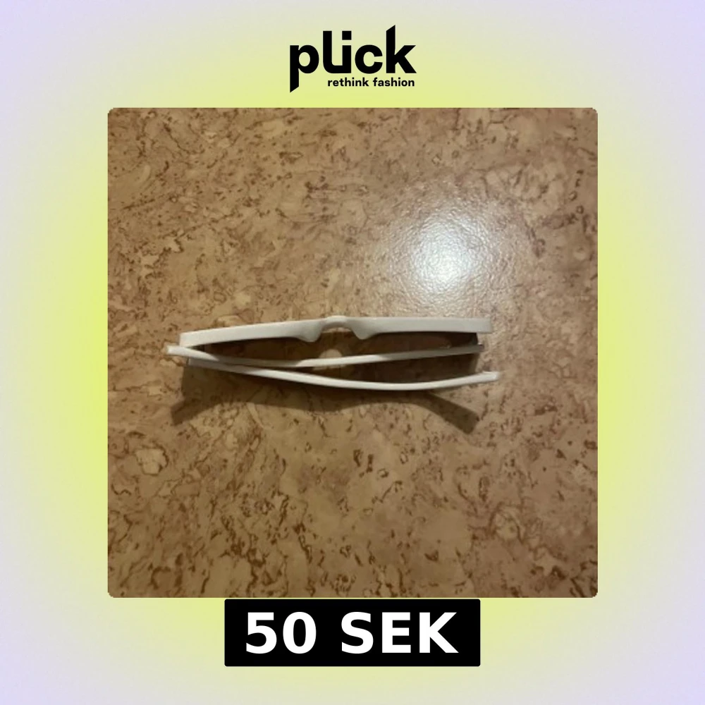 Snygga glasögon med vit, rektangulär båge och svarta linser. De har en stilren och modern look som passar perfekt till fest. Bågarna är i plast och har en cool vibe som lyfter vilken outfit som helst.