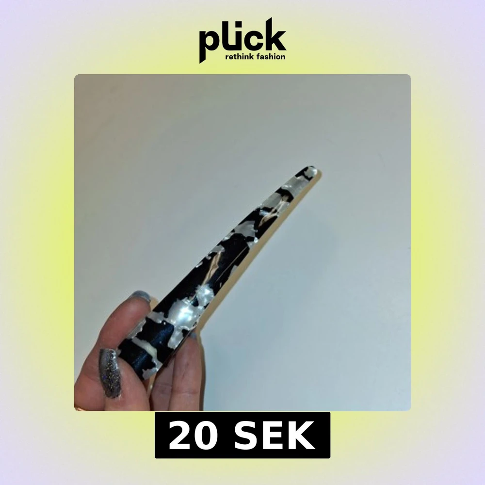 Snygg svart- silvrig Hårklämma i mönster. Hårklämman har en glansig finish och är gjort i syntetmaterial med metall på insidan för extra stadga. Perfekt accessoar för att lyfta din look och hålla håret på plats.