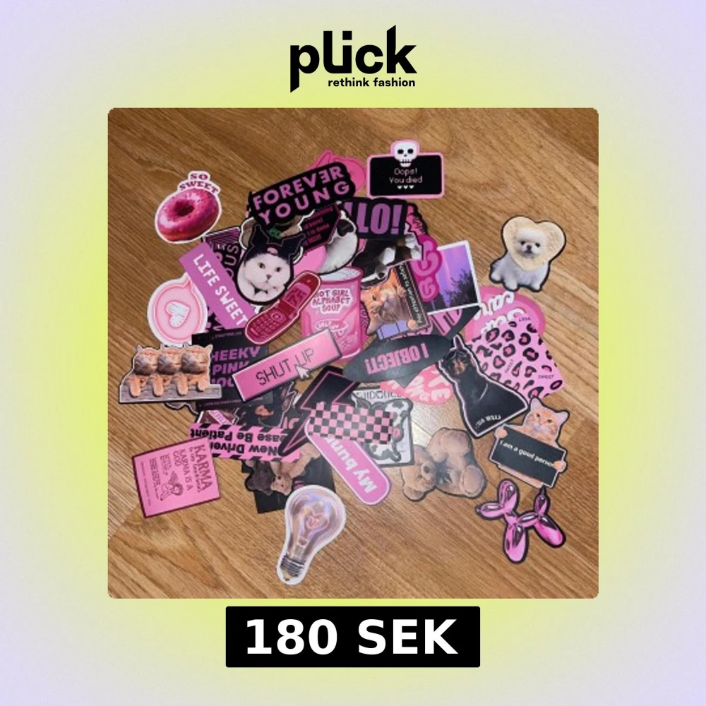 Massa y2k klistermärken i olika former och färger, inklusive rosa, lila och svart. Motiven varierar från text som 'Forever Young' och 'Shut Up' till bilder av djur och föremål som en glödlampa och en donut. Perfekt för att dekorera anteckningsböcker, laptops eller telefoner. ( har andra nyanser i mina andra annonser , kika in💖)