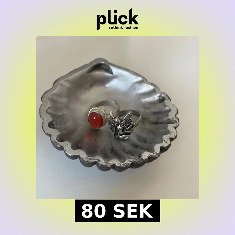 Två par jättesnygga silverringar en med en röd Sten ”kristall” i och en med en älva på. Det går att köpa båda för 80 eller en för 45🙏pris kan diskuteras.