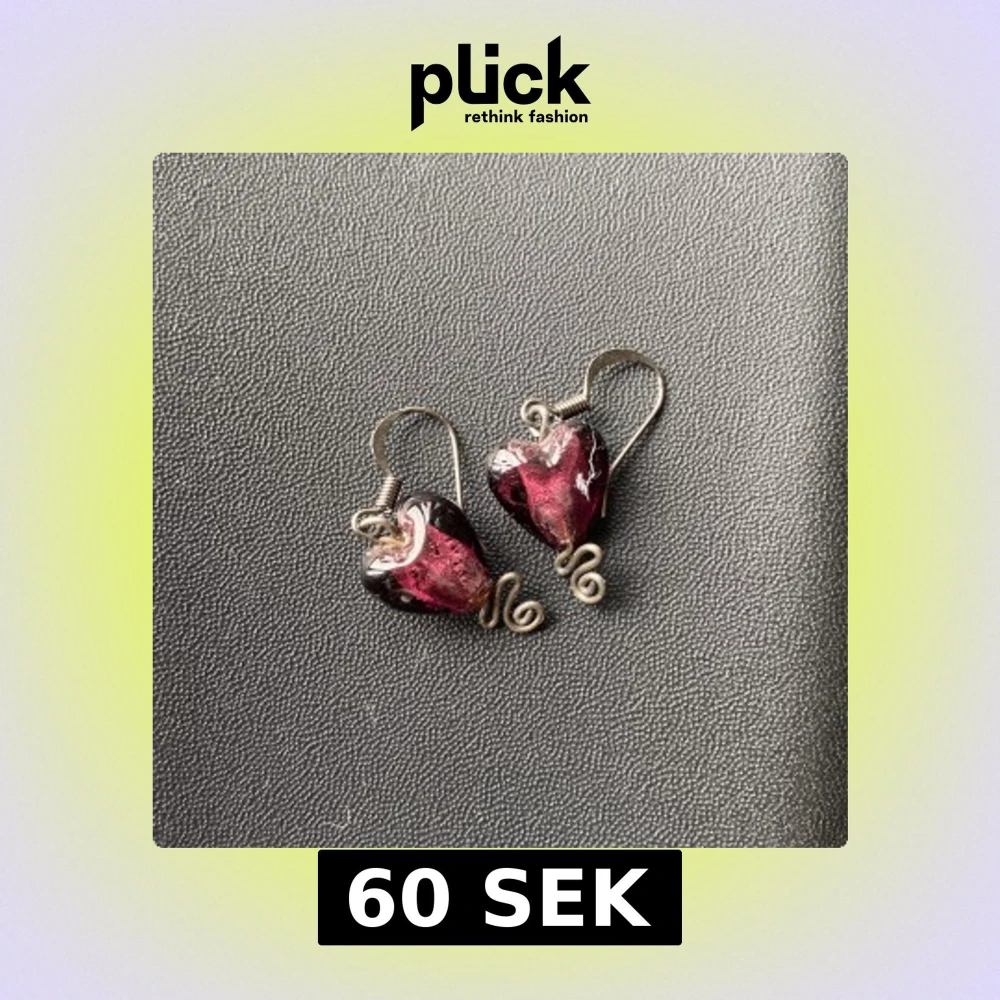 Unika örhängen med lila glashjärtan och silvriga krokar💗 Aldrig använt💗 Köpt i marknad💗