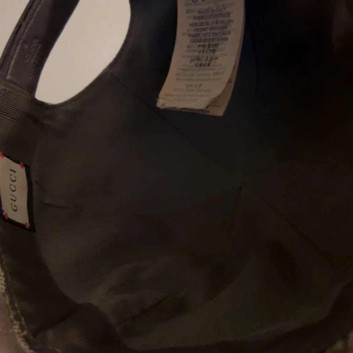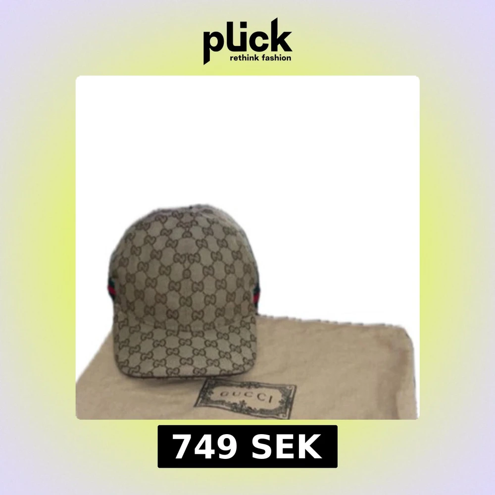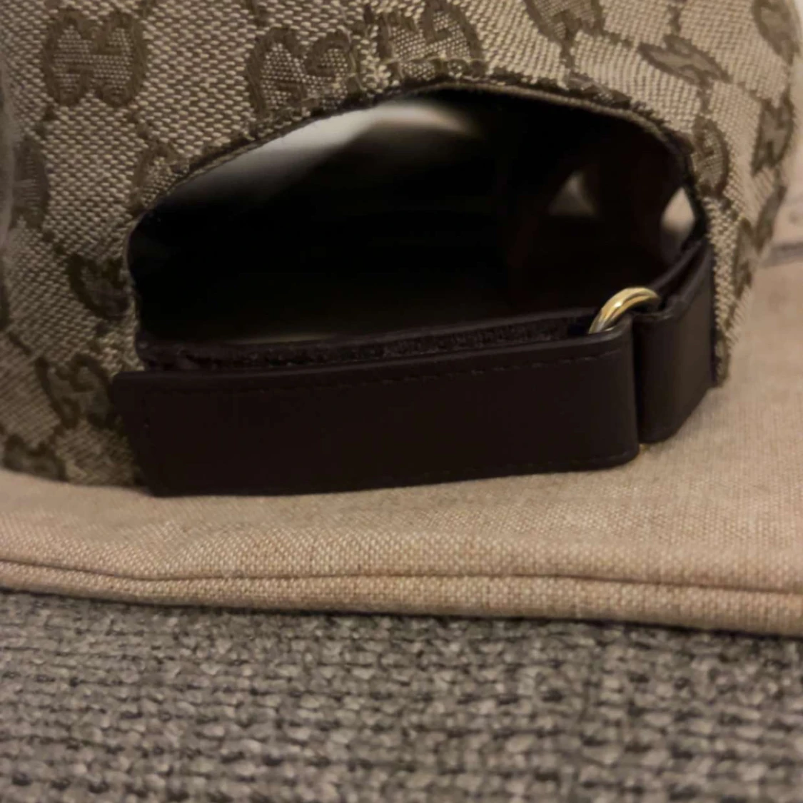 Snygg beige keps från Gucci med klassiskt GG-monogram över hela kepsen. Justerbar rem bak i mörkbrunt skinn och diskreta gröna och röda detaljer på sidorna. Tillverkad i bomullscanvas med exklusiva skinninslag. Perfekt för dig som vill sticka ut med en lyxig accessoar.