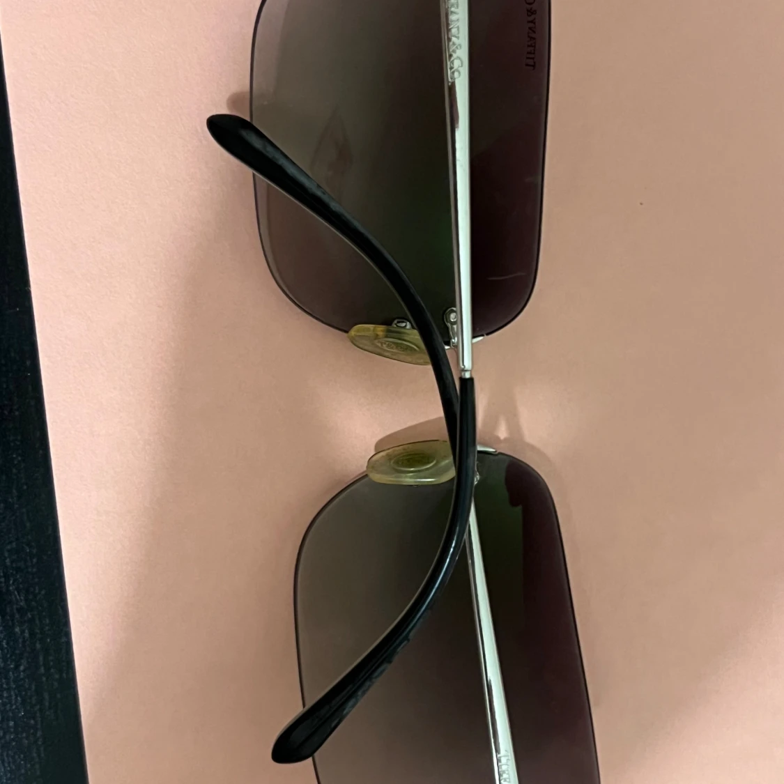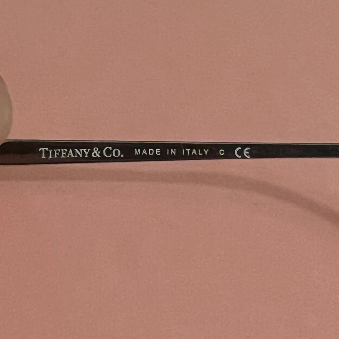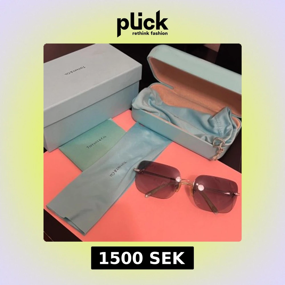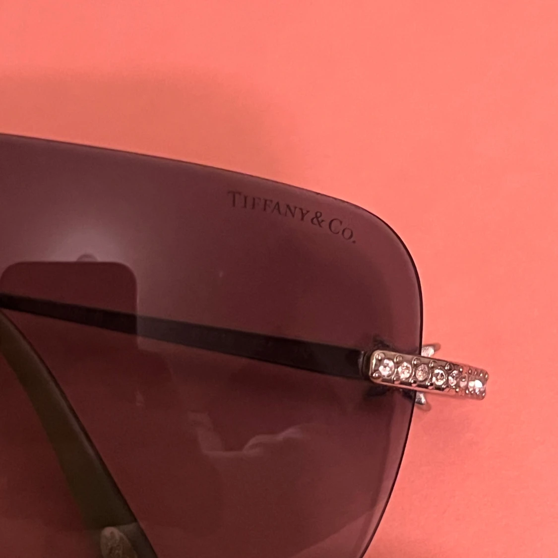 Snygga solglasögon från Tiffany & Co med stora, ”fyrkantiga” glas och tunna silverfärgade bågar. Sidorna är dekorerade med glittrande stenar för extra lyxig känsla. Kommer med originalask, fodral och putsduk i klassisk Tiffany-blå färg. Lite repor i själva glaset men inget som syns mycket. En Sten är borta, annars otroligt fina. Lite märken på själva stödet. Buda gärna om du är intresserad.