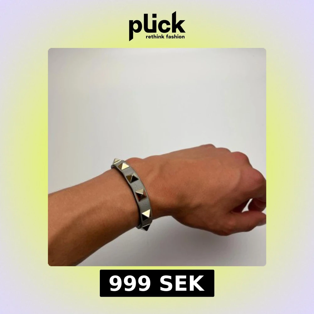 Snyggt grått armband i skinn med silvriga pyramidformade nitar runt om. Justerbart spänne i metall för perfekt passform. Perfekt accessoar för att ge din outfit en edgy vibe.