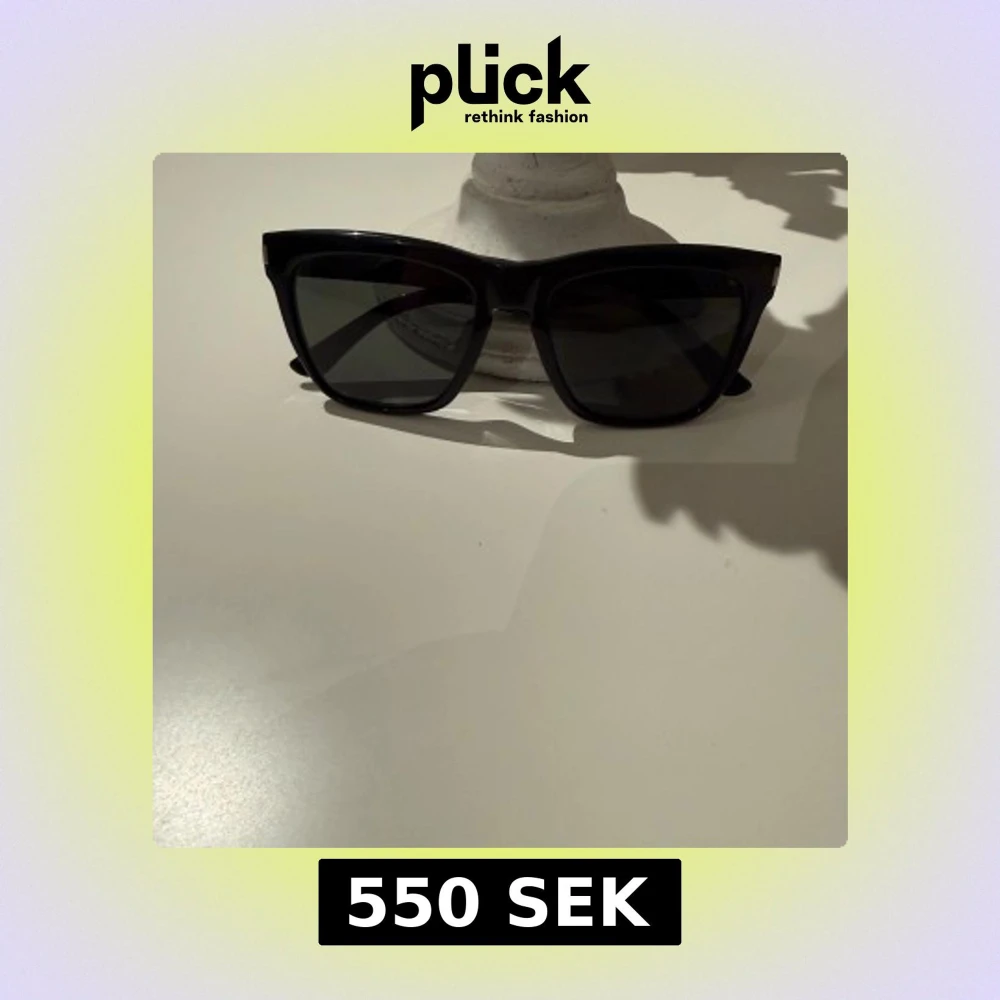 Snygga svarta solglasögon från Saint Laurent med klassisk, fyrkantig båge och mörka glas. Ramen är i blank svart plast och loggan syns på skalmen. Perfekta för en stilren look och passar till allt.