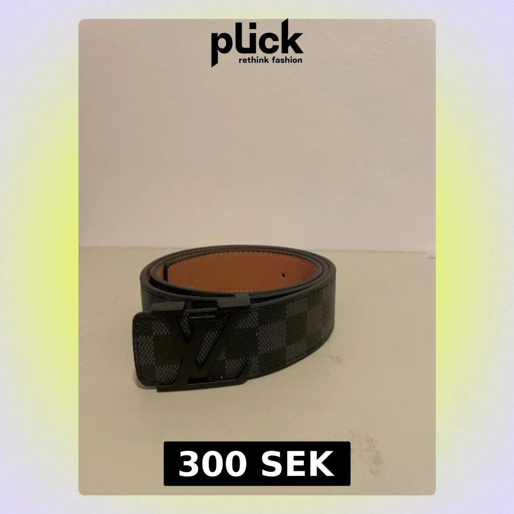 Snyggt bälte med klassiskt rutigt mönster i svart och grått. Bältet har en stor logga i mattsvart metall som spänne och insidan är i ljusbrunt skinn. Perfekt accessoar för att lyfta din outfit.