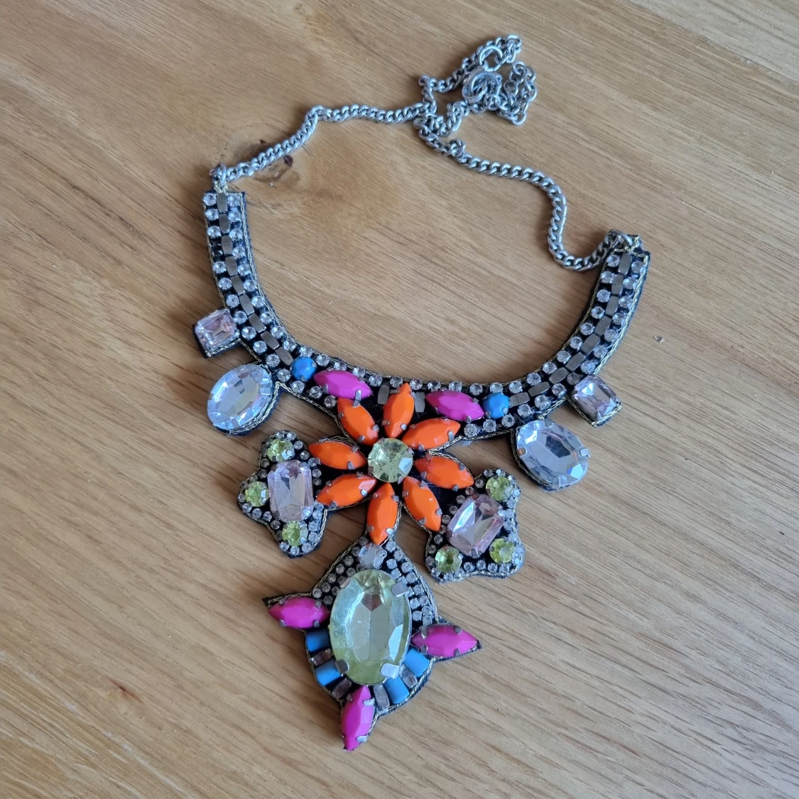 Stort halsband med stenar.