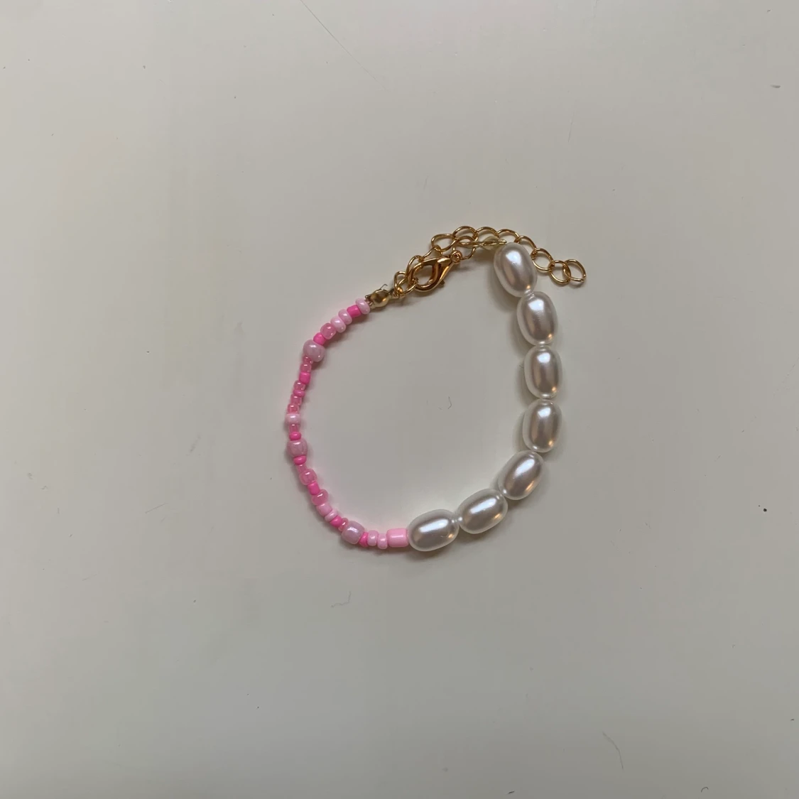 Gulligt pärlarmband🌸 armbandet är 17cm+4cm men går självklart att pnska egen längd. Frakt: 13kr men vid köp av 3 armband så bjuder jag på frakten😁