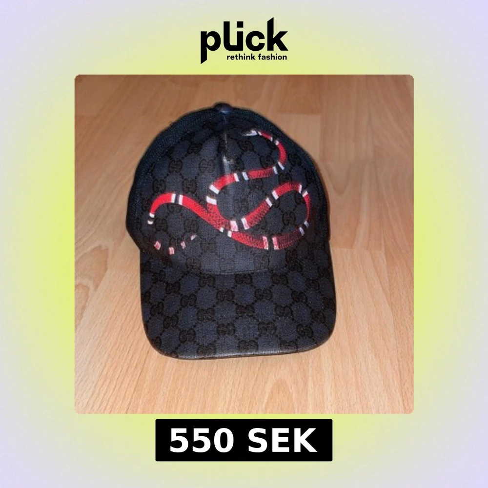 Svart keps från med klassiskt GG-monogram över hela kepsen och en röd orm tryckt framtill. Baksidan har mesh-tyg och justerbart band med röd och blå rand. Snygg och unik accessoar för dig som vill sticka ut.