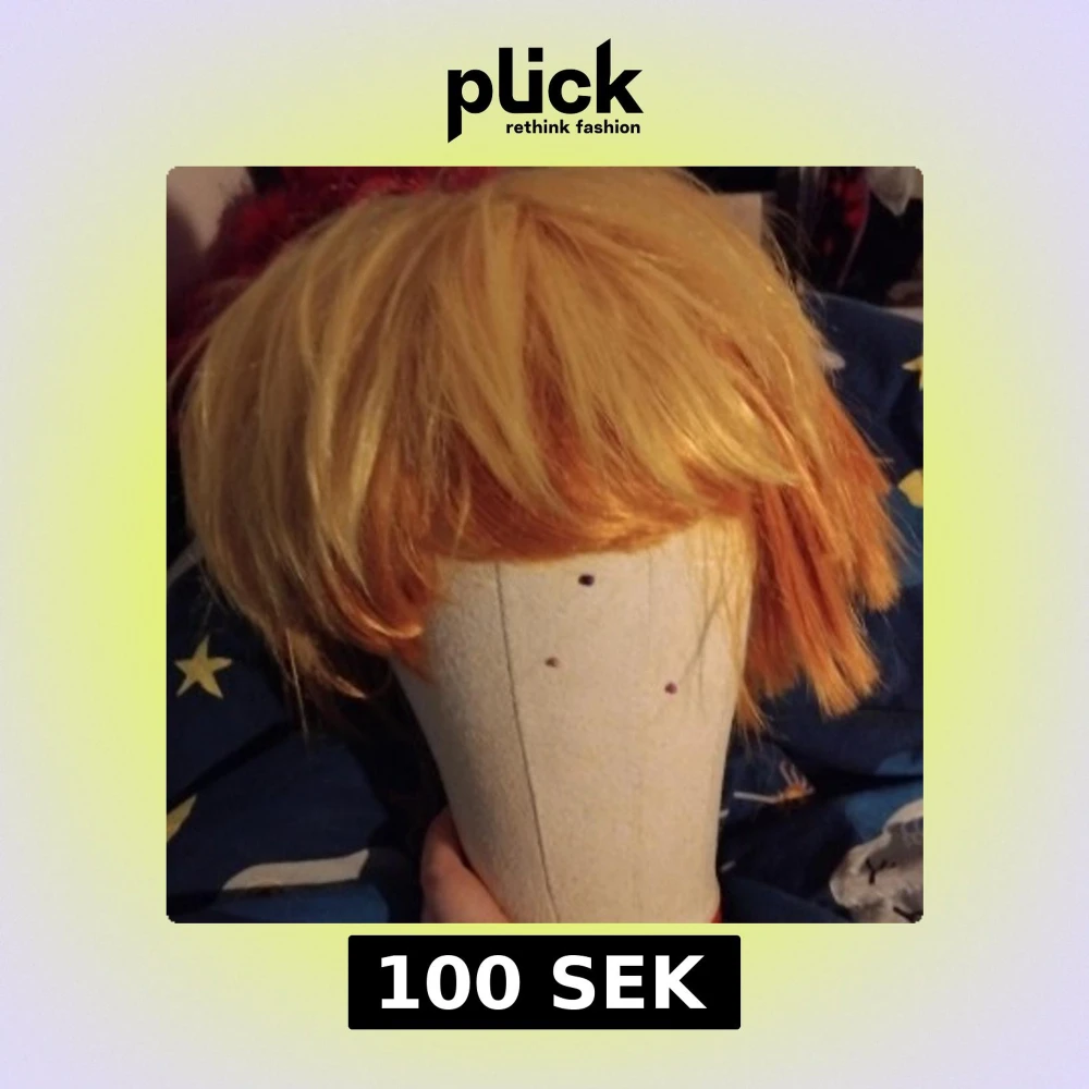 Snygg peruk i en mix av blonda och orange toner. Perfekt för cosplay eller maskerad. Den har en rufsig stil med korta längder som ger en cool look. Aldrig använd.