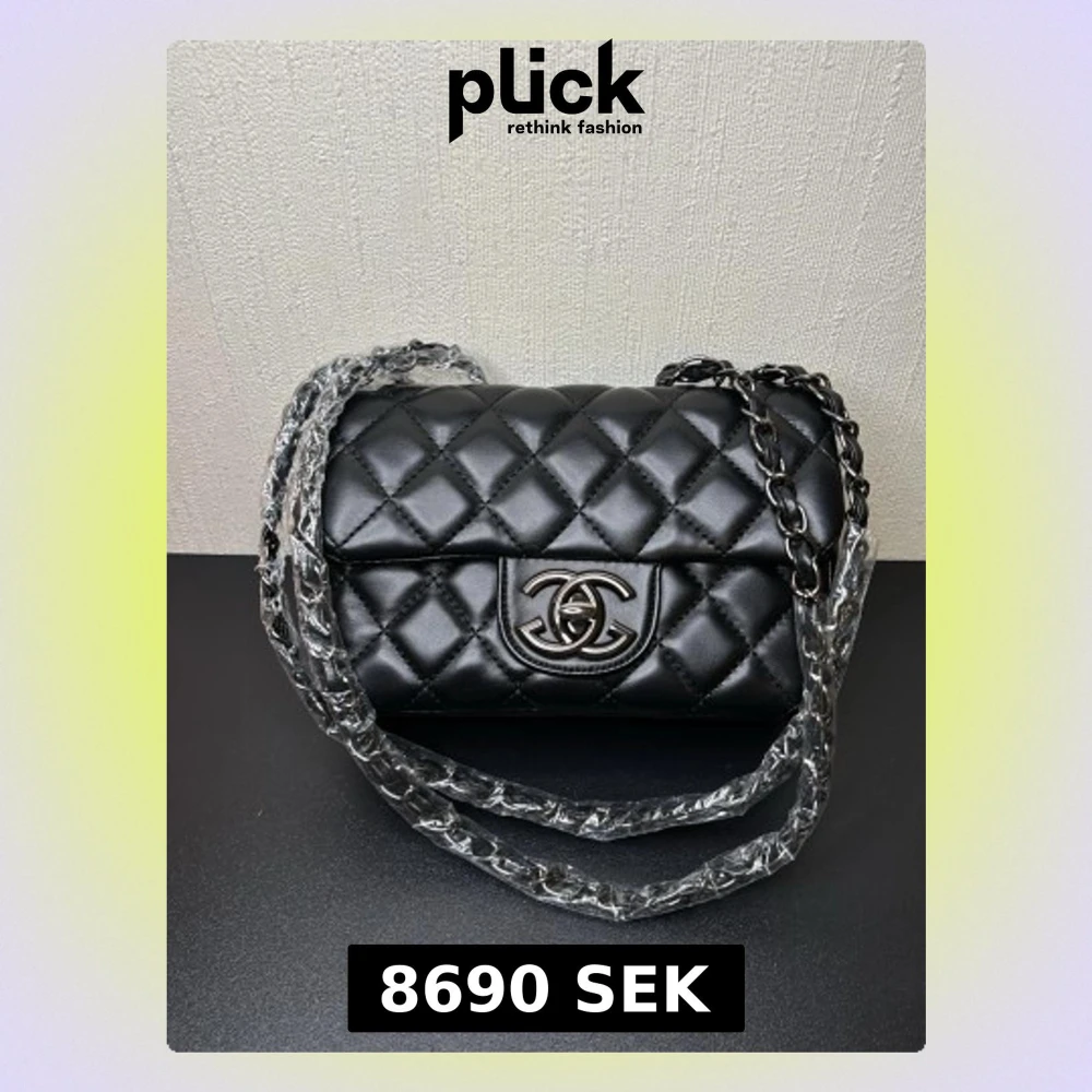 Snygg svart axelväska från Chanel i quiltat läder med silverfärgat CC-spänne framtill. Kedjerem med insytt läder ger en lyxig känsla. Klassisk och tidlös design som passar till många olika stilar.