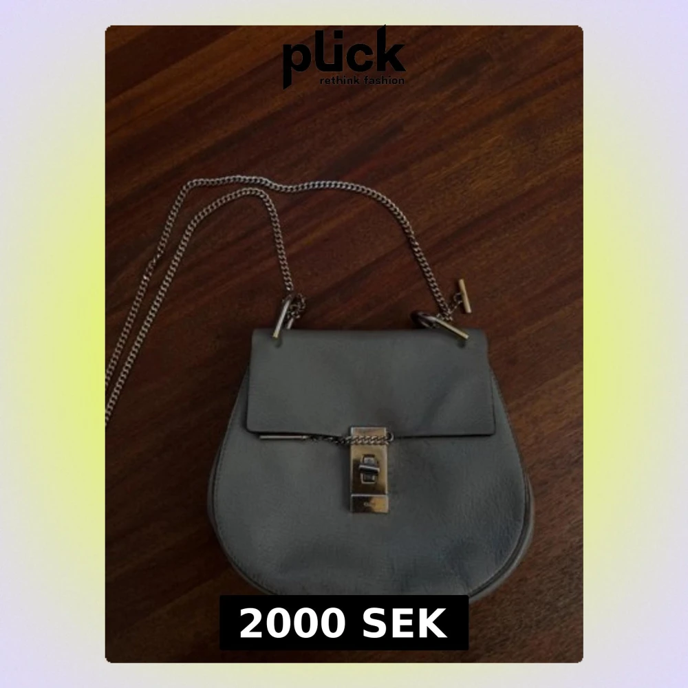 Snygg grå axelväska från Chloé i mjukt läder med guldfärgad kedjerem och ikoniskt vridlås framtill. Väskan har rundad form och stilren design som passar till många outfits. Perfekt för dig som vill ha en trendig och lyxig accessoar.