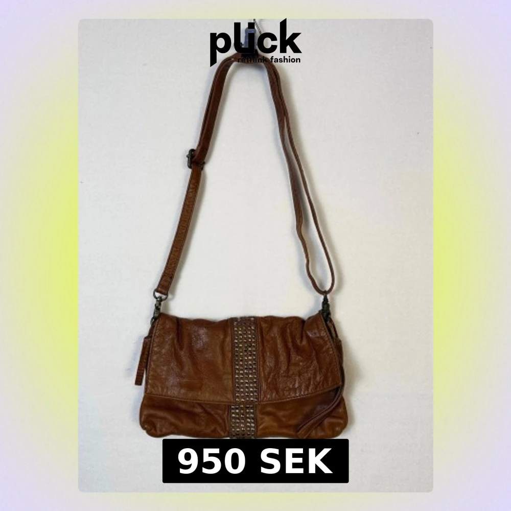 Snygg brun axelväska i mjukt läder med justerbar rem. Väskan har en cool detalj med rader av silver- och guldfärgade nitar på framsidan som ger en edgy vibe. Perfekt storlek för det viktigaste och passar till många olika outfits.