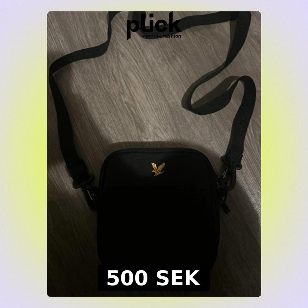 Snygg svart axelväska från Lyle & Scott med justerbar axelrem och guldfärgad logga framtill. Väskan har en fyrkantig form och är tillverkad i slitstarkt tygmaterial. Perfekt för att bära det viktigaste och ger en clean look till din outfit.jätte fin och oanvänd!