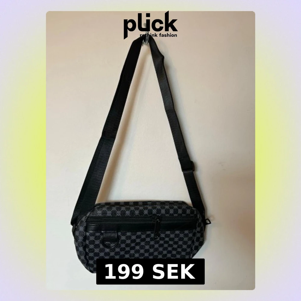 Svart axelväska med rutigt mönster