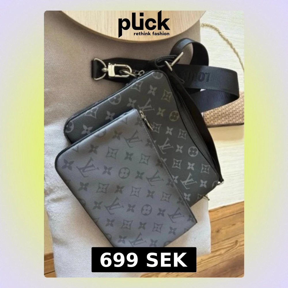 Snygg axelväska i svart med klassiskt monogrammönster. Väskan har justerbar axelrem, silverfärgade detaljer och en avtagbar innerficka med dragkedja. Tillverkad i slitstarkt canvasmaterial.
