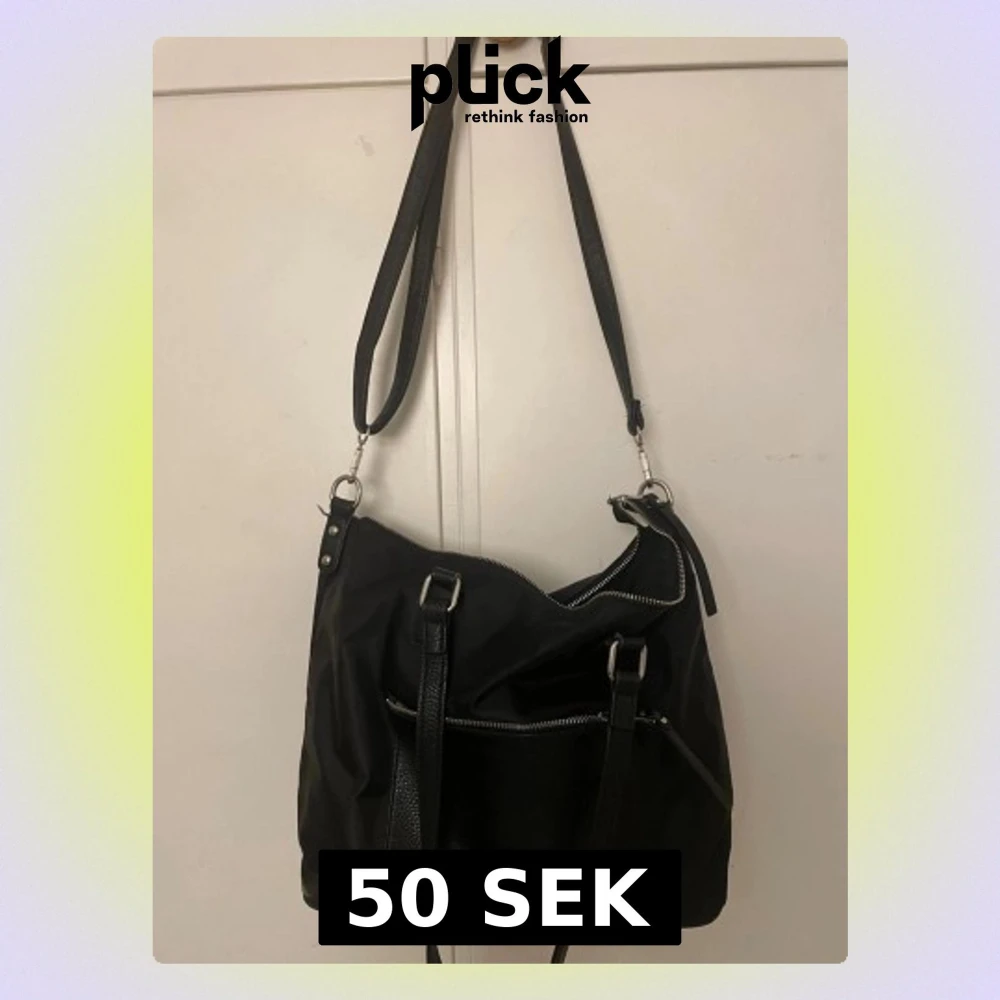 Snygg svart axelväska med både lång och kort rem, flera dragkedjor och praktiska fack. Väskan har en stilren design i konstläder och tyg, perfekt för dig som vill ha plats för allt du behöver. Silverfärgade detaljer och justerbar axelrem.