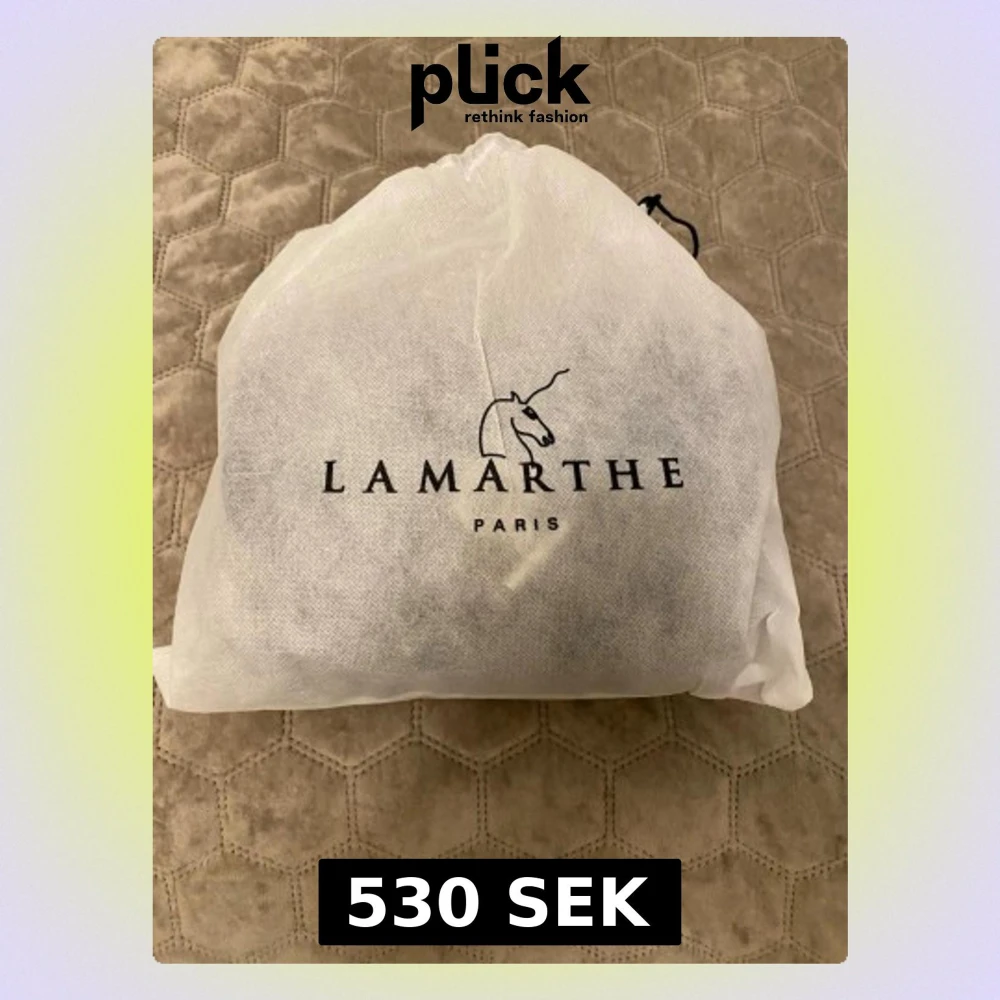 Snygg svart axelväska i äkta läder från Lamarthe Paris. Väskan har ett lock med silverfärgat spänne och justerbar axelrem. Stilren design med vita kontrastsömmar och exklusiv känsla. Perfekt för dig som gillar klassiska accessoarer.