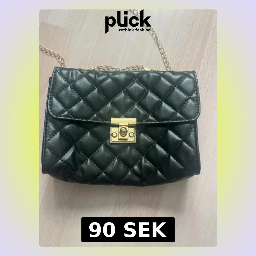 Snygg svart axelväska i quiltat mönster med guldfärgad kedjerem och guldfärgat vridlås. Väskan har en klassisk rektangulär form och är tillverkad i konstläder. Perfekt accessoar för att lyfta din outfit.