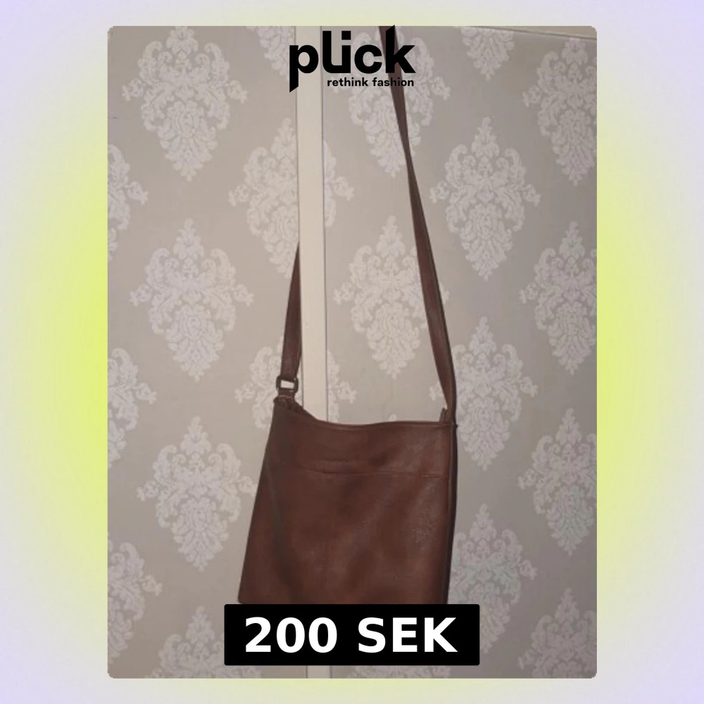 Snygg brun axelväska i läder med enkel, stilren design och justerbar axelrem. Väskan har en fyrkantig form och en diskret söm framtill. Verkligen tidlös och perfekt nu till våren!