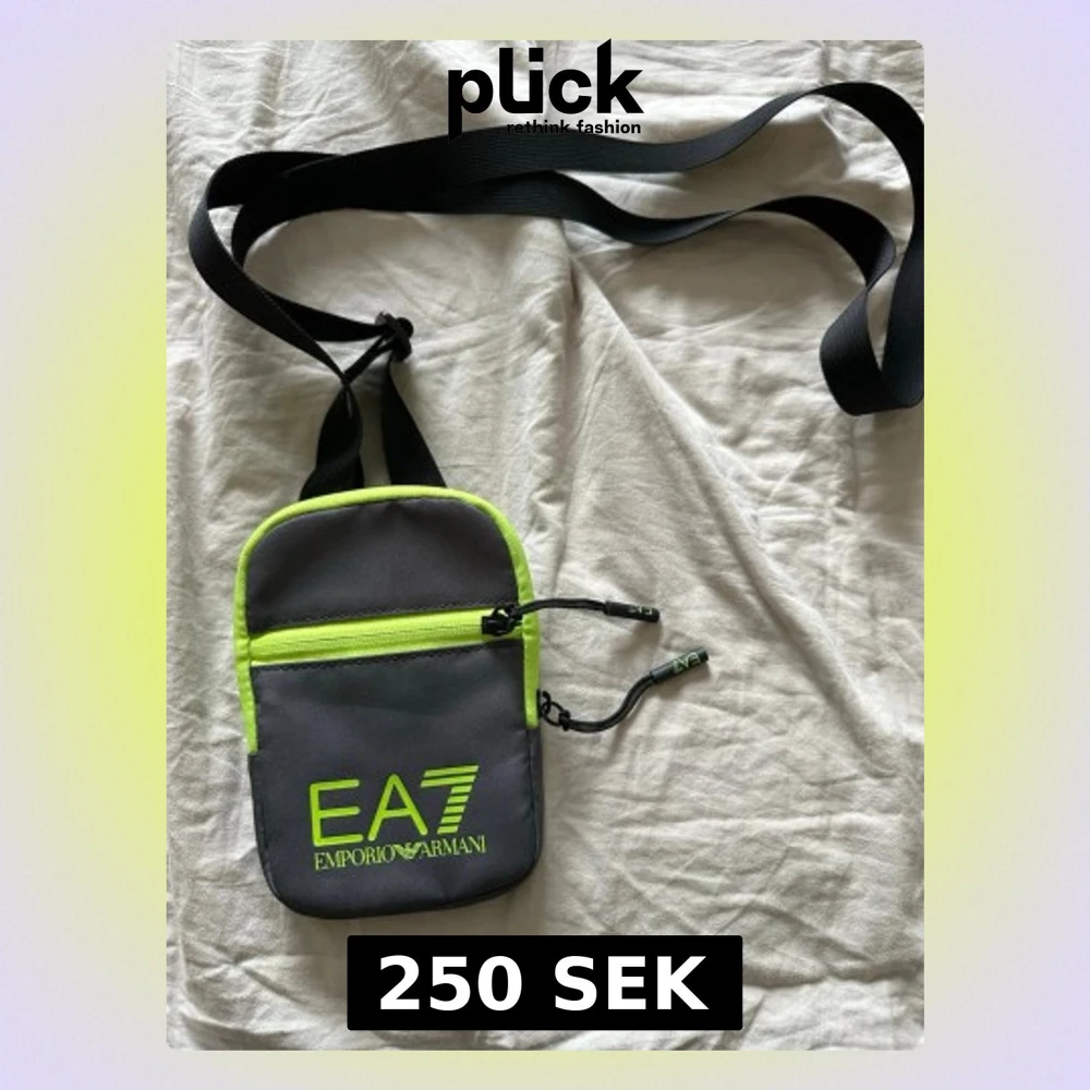Snygg axelväska från EA7 Emporio Armani i grått med neonlime detaljer och logga framtill. Väskan har justerbar svart axelrem, dragkedja upptill och en extra ficka med dragkedja på framsidan. Tillverkad i slitstarkt syntetmaterial.