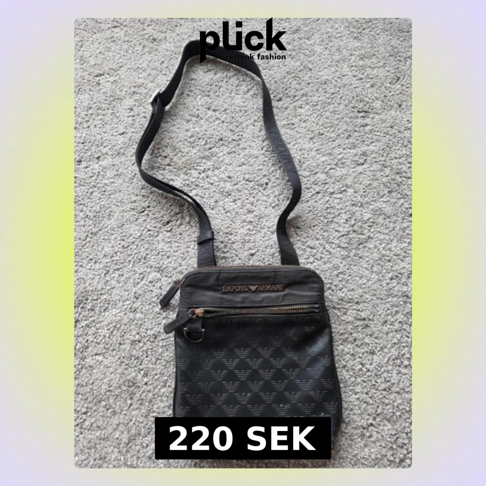 Cool svart axelväska från Emporio Armani med justerbar rem och snyggt mönster av logotypen på framsidan. Väskan har två dragkedjefack och är tillverkad i slitstarkt syntetmaterial. Perfekt för att bära dina essentials och ge din outfit en lyxig touch.