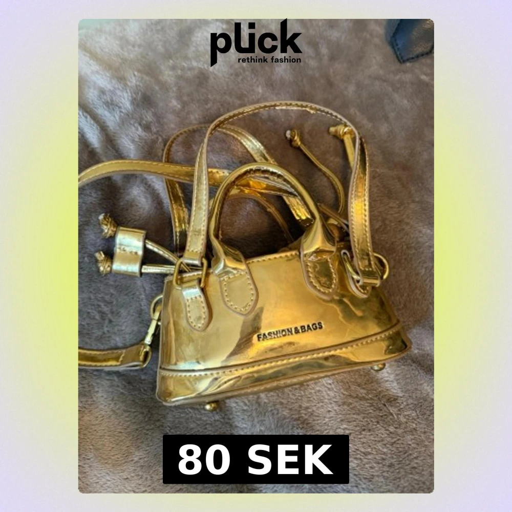 Snygg miniguldväska med både handtag och axelband. Knappt använd.