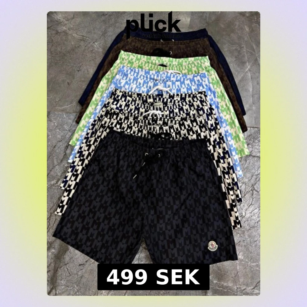 Lyxiga badbyxor med ett diskret M-mönster över hela tyget och klassisk logga på benet. De har elastisk midja med dragsko för perfekt passform. Materialet är snabbtorkande och passar perfekt för strand eller pool.