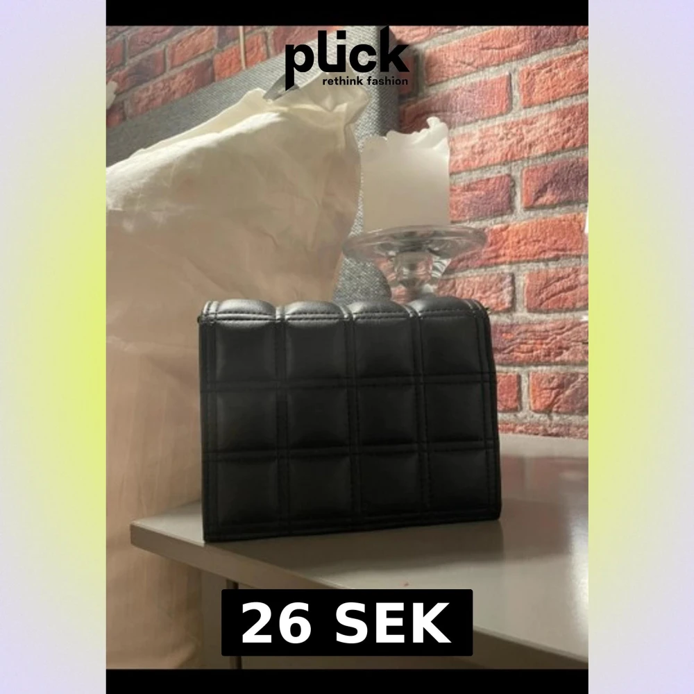 Snygg svart handväska med quiltad design och rektangulär form. Väskan är tillverkad i skinn och har ett stilrent rutmönster på framsidan. Perfekt storlek för det viktigaste och passar till många olika looks. inget band till det