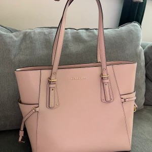 Michael kors väska  - Jätte gullig rosa Michael kors väska.  Använd väldigt få gånger. Köpt för några år sedan för ca 2500kr och tyvärr bara stått på en hylla. Går att bära kort och lång. Väldigt mycket fack (rymlig). Finns även ett fack på baksida.