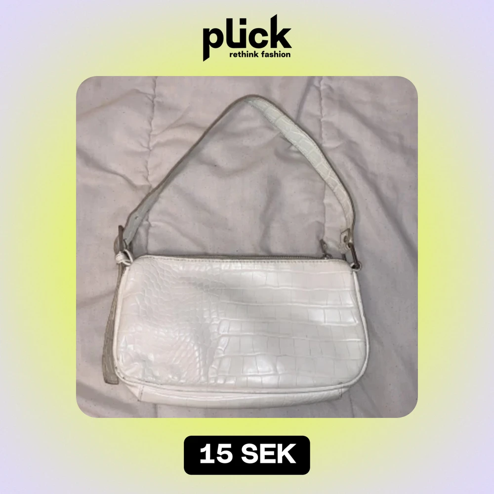 En vit axelremsväsk med en stor ficka och en liten på baksidan från bik bok, dock har den typ tappat färg på baksidan. 🤗