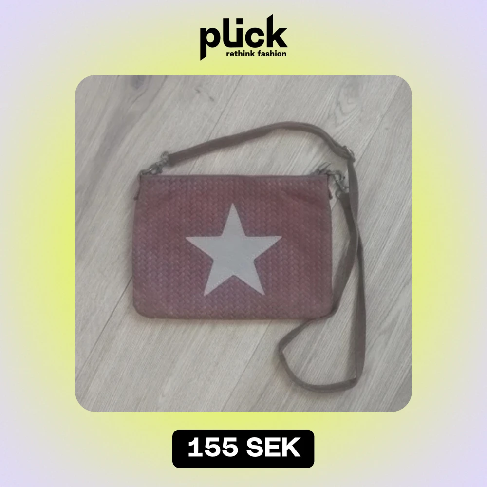 Handväska / axelväska i läder. Stjärnmotiv. Bredd 27, höjd 21, axelband 105 på bild men justerbart. Lite slitningar på baksidan (sidan som är mot kroppen) annars bra. Mer mörkbrun än bilderna visar.