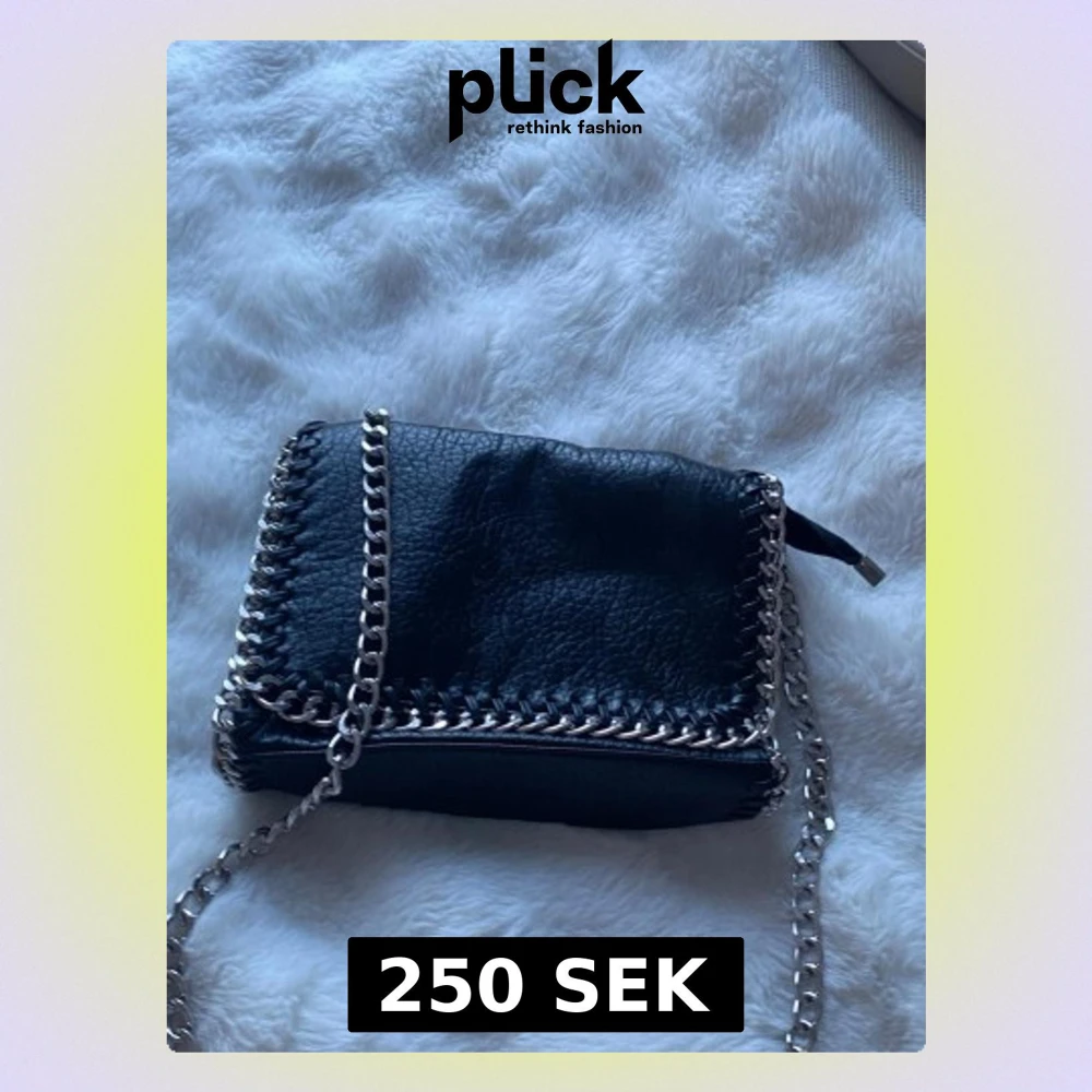 Svart axelväska med kedja från Tiamo - Cool svart axelväska från Tiamo med grov silverkedja som axelrem och detaljer runt kanterna. Väskan har magnetknappar, dragkedja på baksidan och insidan, sliten på baksidan men syns knappt nr man använder🫶🏽