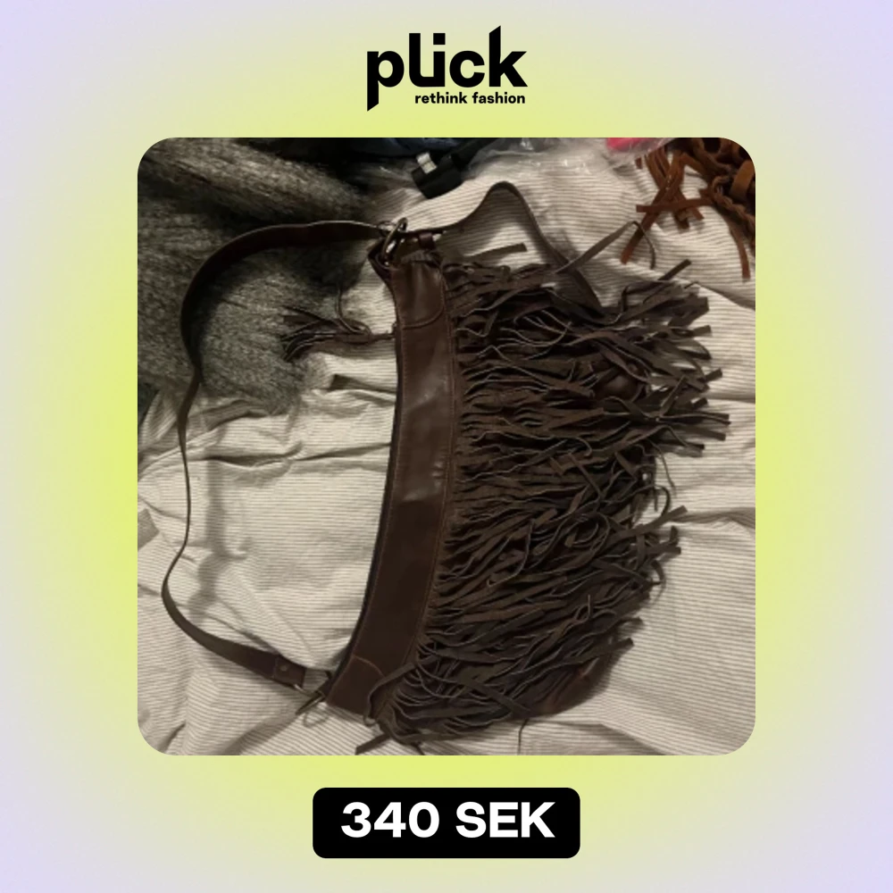 Så himla snygg brun väska med fransar! Jätterymlig och passar till allt
