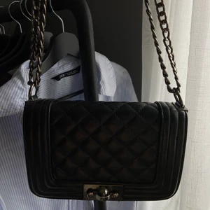 zara väska kedja - En väska från zara med kedja som man kan ta bort. Finns också en rem man kan sätta dit om man vill ha en liten axelrems väska. Har använt fåtal gånger och sparsamt, inga tecken på användning.