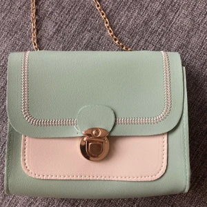 Jag säljer denna gröna väska. Säljer denna väskan på grund av att Jag fick två stycken. Jätte fin på långt håll men när man kommer nära och kolla i väskan ser det lite konstigt ut. Men det är inget man märker.