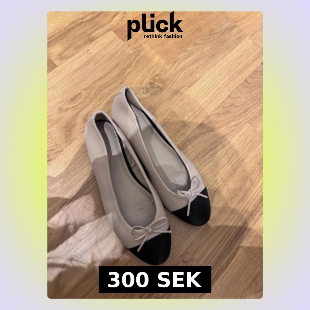 Snygga ballerinaskor i beige med svart tåparti och dekorativ rosett framtill. Skorna har en klassisk rundad form och är tillverkade i ett slätt material som ger en stilren look. Perfekta för dig som gillar tidlös och enkel design. Slutsålda