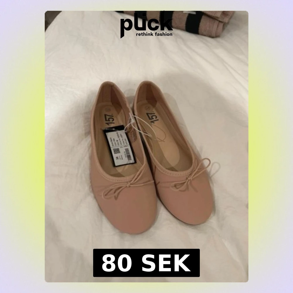 Säljer ett par stilrena rosa ballerinaskor med en rosettdetalj framtill. Aldrig använda