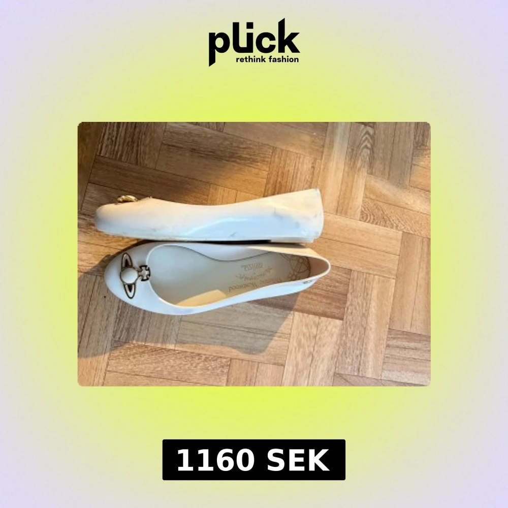 Säljer ett par vita ballerinaskor från Vivienne Westwood x Melissa med ikonisk guldfärgad orb-detalj framtill. Skorna är gjorda i mjuk plast och har rund tå samt låg klack. Perfekta för dig som gillar statementdetaljer och unik design. Dom har lite missfärgningar men det går nog bort, säljer pga de är för stora för mig❣️ det är storlek 38