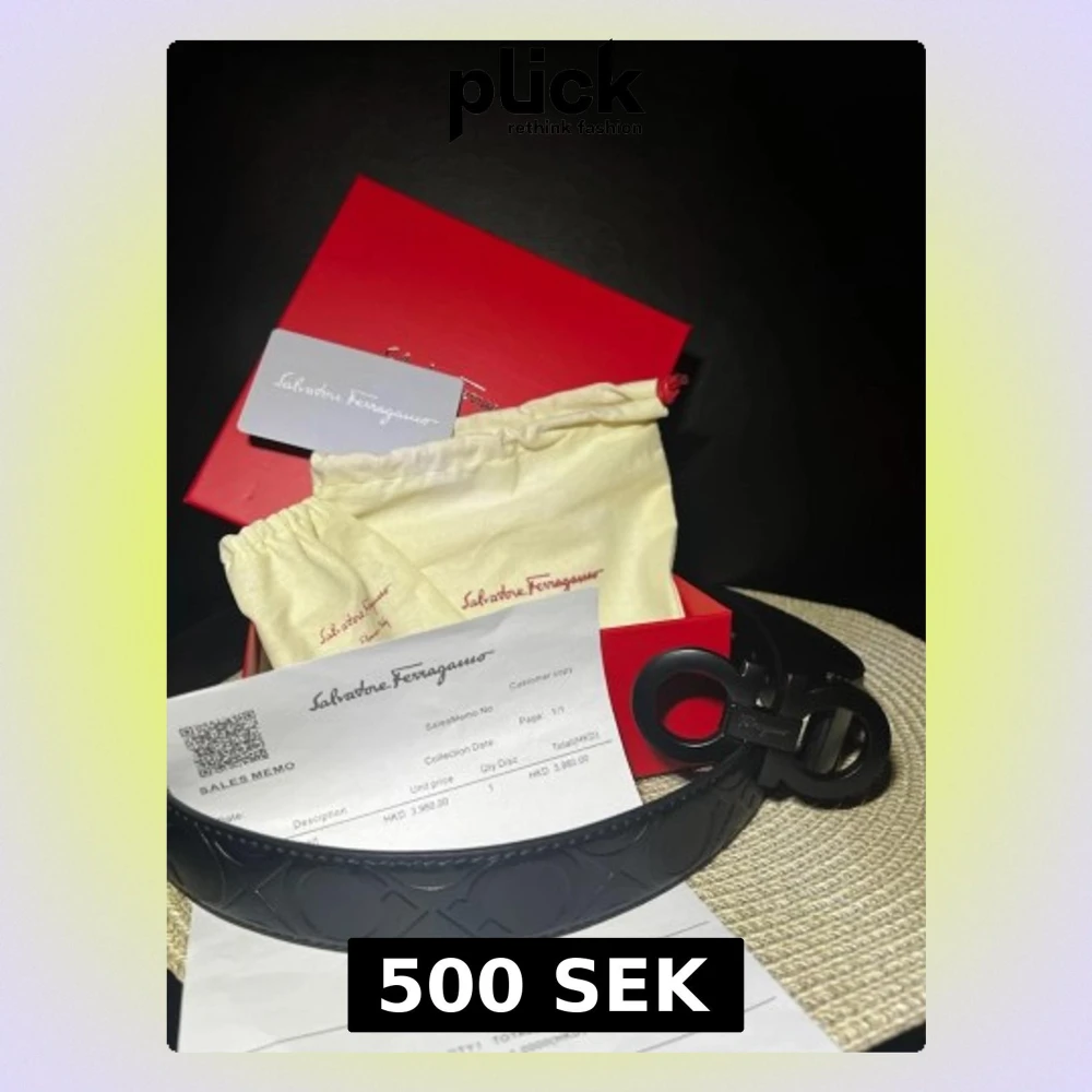 Snyggt svart bälte från Salvatore Ferragamo med ikoniskt dubbel-Gancio-spänne i matt finish. Bältet har präglat mönster längs hela remmen och levereras med originalförpackning och dustbag. Perfekt accessoar för att lyfta din outfit.