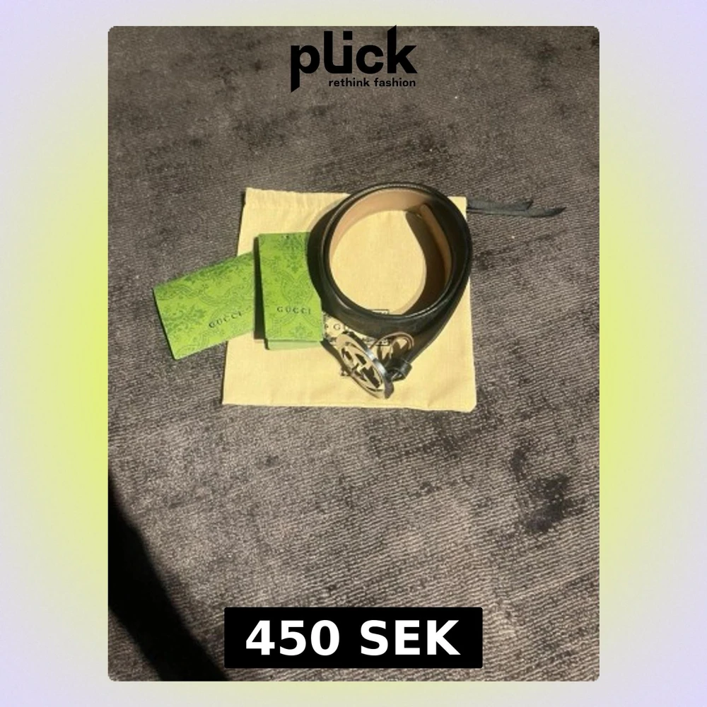 Svart skärp med GG-spänne från Gucci - Snyggt svart skärp från Gucci med det ikoniska dubbla GG-spännet i matt svart metall. Bältet är gjort i strukturerat skinn och har en klassisk, stilren design som passar till det mesta. Perfekt accessoar för att lyfta vilken outfit som helst.