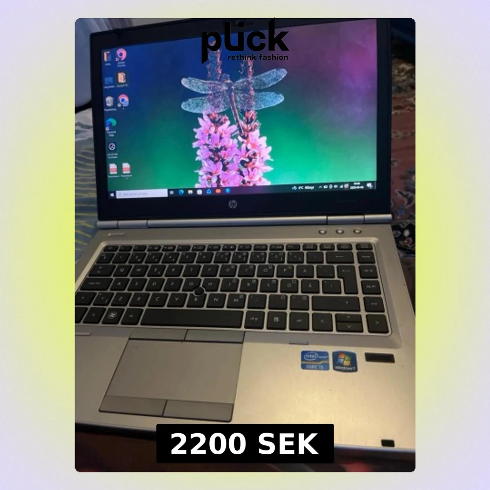 HP EliteBook bärbar dator i silver med svart tangentbord och aluminiumchassi. Utrustad med Intel Core i5-processor och Windows 7. Kommer med laddare och svart USB-mus. Perfekt för plugg, surf och vardagsgrejer.