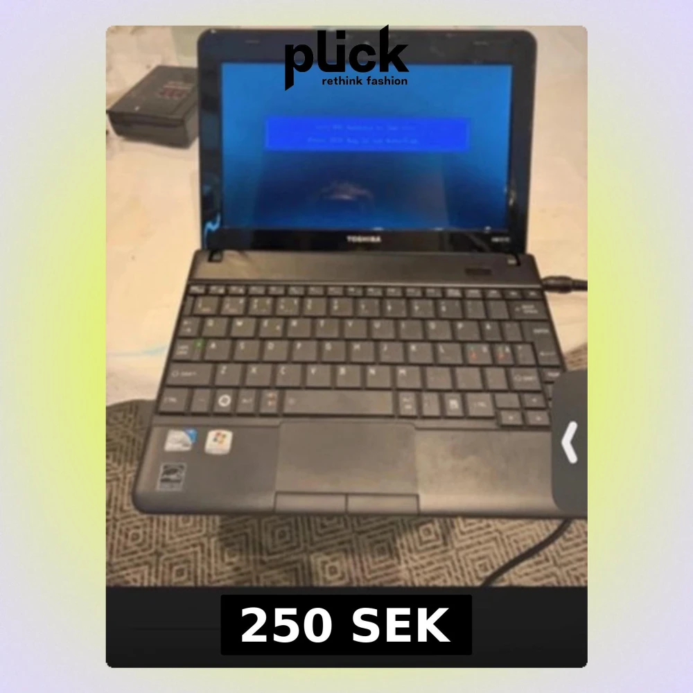 Säljer en svart bärbar dator från Toshiba med kompakt design och klassiskt tangentbord. Skärmen är mindre och datorn har en stilren, matt finish. Perfekt för dig som vill ha en smidig laptop att ta med överallt.
