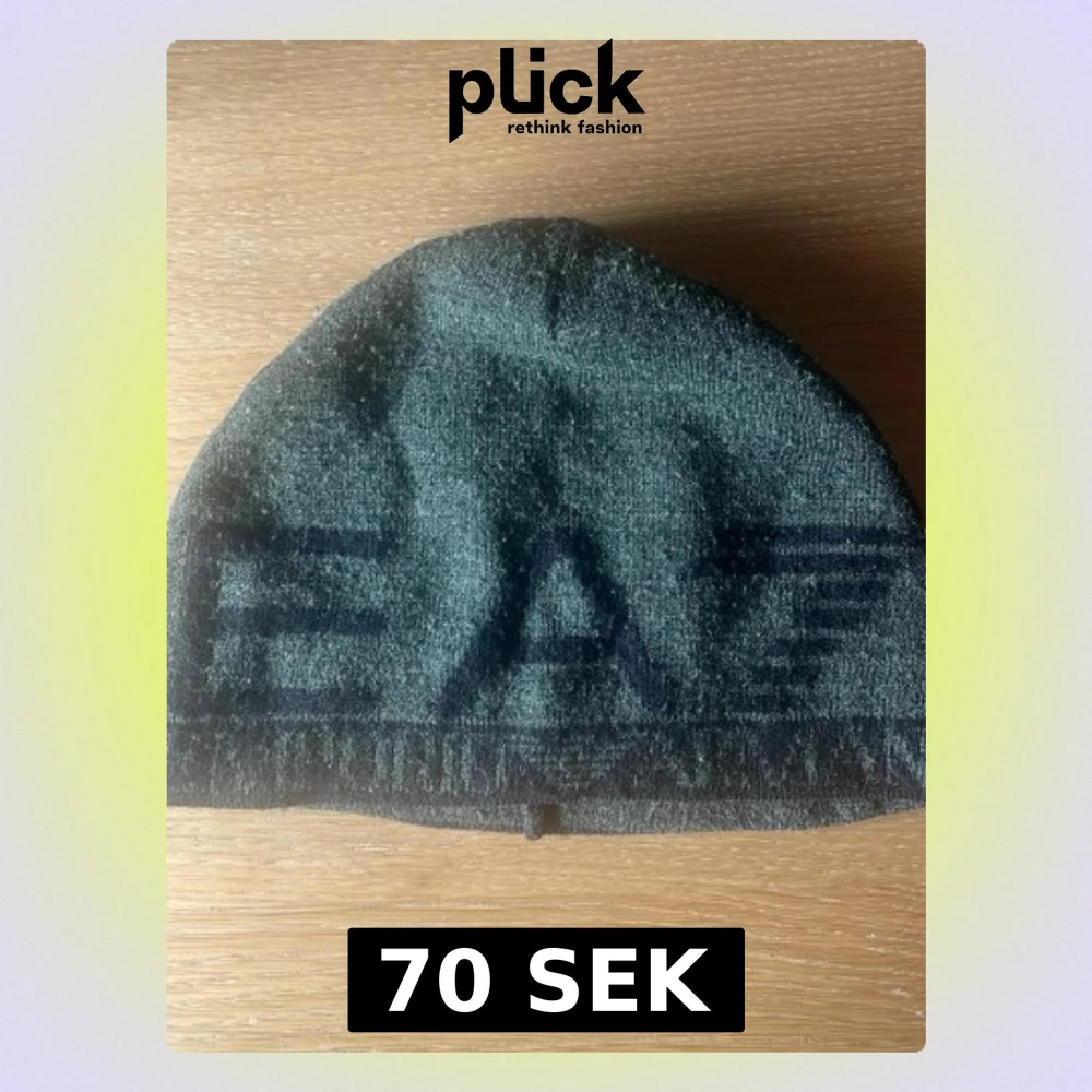 Säljer en svart mössa från EA7 Emporio Armani med klassisk logotyp på insidan. Mössan är enkel och stilren, perfekt för dig som vill ha ett snyggt accessoar till hösten och vintern. Materialet känns mjukt och bekvämt.
