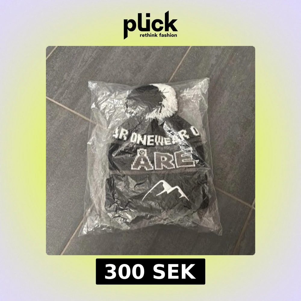 Säljer en svart och vit stickad mössa från Onewear med stor tofs på toppen. Mössan har texten 'ÅRE' och ett stiliserat bergmotiv framtill. Perfekt för kalla dagar och vintersäsongen. Jag van den på en intervju med Bruce lee men har inte öppnat den.